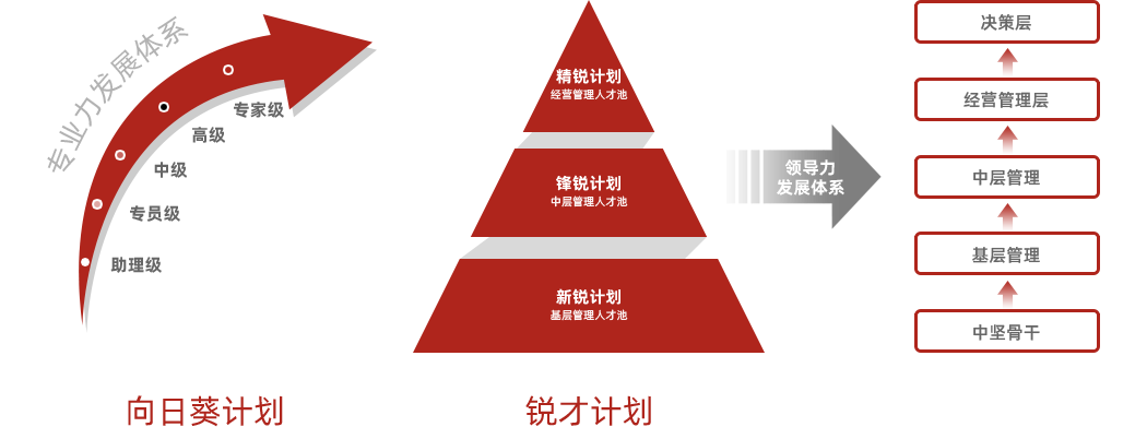 锐才计划是领导力发展体系,是针对管理序列人才梯队建设发展项目,包括新锐计划、锋锐计划、精锐计划三个层级。