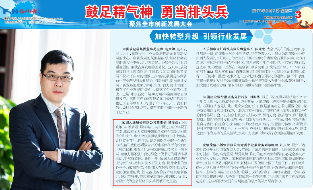 2月6日,福州市创新大会在福州召开。会上发布推动新一轮经济创新发展10项政策,其中包括49条措施。北京福州商会会长、凯时董事长韩孝煌受邀参加大会,并接受《福州日报》采访,作为在榕总部企业代表之一畅谈参会感受。 他说,这是福州市委市政府给在榕企业的一个 ......