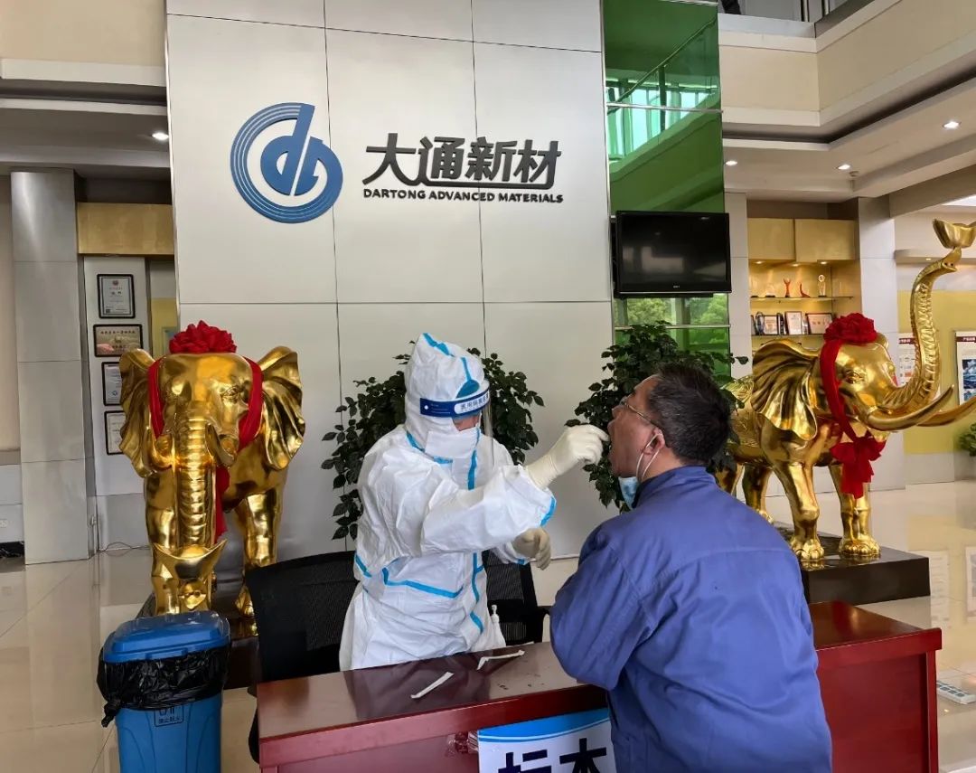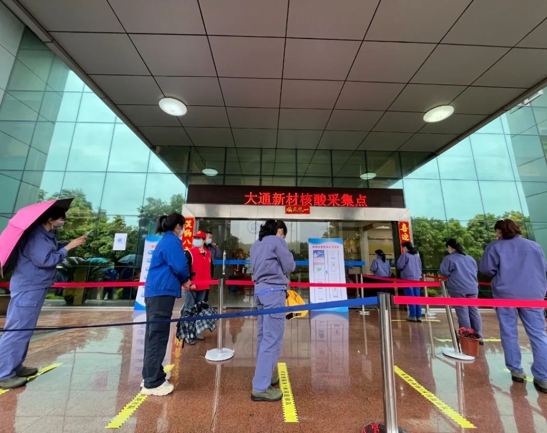 “两轮的核酸检测,一次比一次快、一次比一次便捷”。3月28日,大通新材组织第二次全员核酸检测,现场秩序井然,干部职工平均检测时间不到十分钟就可以回归工作岗位继续生产。自从福州局部疫情发生以来,大通新材干部职工上下一心,一手严抓疫情防控,一手力保生产不停工,积极联系防疫机构上门检测,全力克服疫情影响,共同为现场生产提供基础保障。这是福州速度,更是冠城温度!