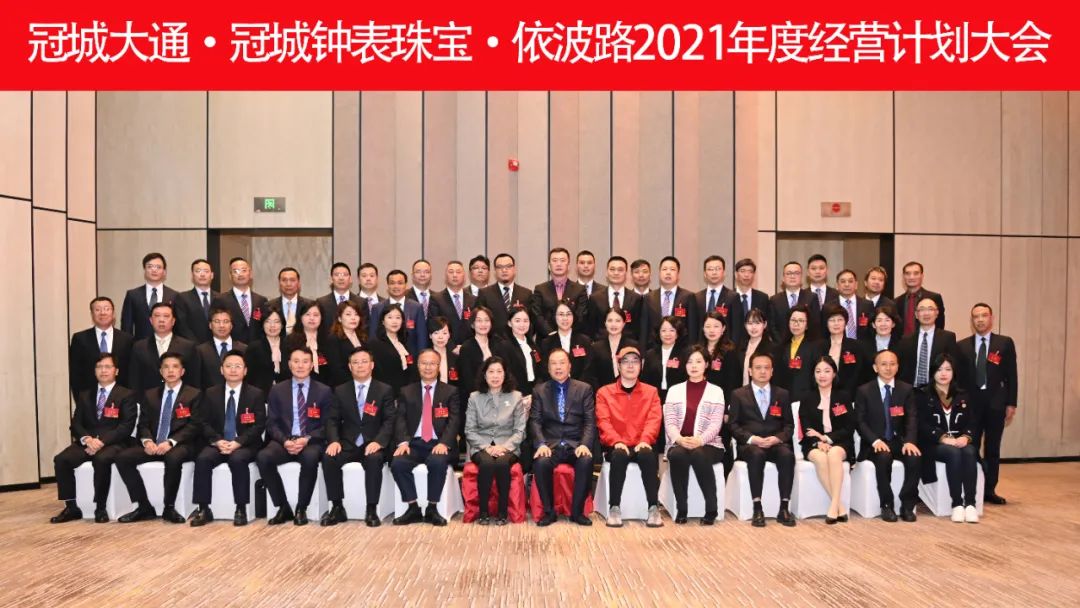 2021年3月20日—21日,凯时·冠城钟表珠宝2021年经营计划大会在上海召开。冠城集团董事局主席韩国龙,凯时董事、总裁韩孝捷,冠城钟表珠宝集团执行董事、行政总裁商建光以及两大集团总部、各下属子公司近50余位中高级管理人员出席了会议。本次大会由凯时董事、常务副总裁刘华主持。