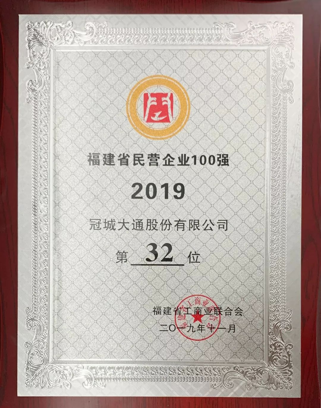 11月19日,由福建省工商联、福州市人民政府主办,福建自贸区福州片区管委会承办的“2019福建省民营企业100强发布暨福州市招商推介”系列活动在福州举行。大会上权威发布了“2019福建省民营企业100强”榜单,凯时股份有限公司位列第32位。