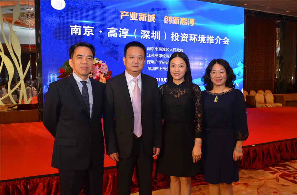 10月20日,南京·高淳(深圳)投资环境推介会在深圳举行。本次推介会由南京市高淳区人民政府主办,深圳产学研合作促进会、深圳市上市并购协会协办。公司董事总裁韩孝捷,董事常务副总裁刘华,总裁助理、长三角区域公司总经理陈宝清,长三角区域公司副总经理叶黎明等出席。