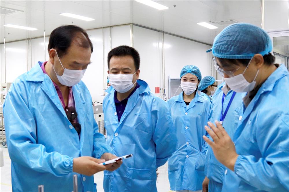 韩国龙主席一行深入生产现场、办公区域等地视察各项工作,并深入员工生活区域进行实地考察,亲切慰问员工的日常生活情况等。他们首先顶着炎炎烈日来到福建冠城瑞闽生产现场,分别对电芯研发中心、质量检测中心、自动化PACK生产线及电芯生产线进行实地视察。韩国龙主席走走停停,认真听取了福建冠城瑞闽经营层对电芯新产品研发及生产情况汇报等。他对洁净的厂房、现代化的生产设备表示充分肯定,对新能源全体员工努力工作做出高度评价。他指出,福建冠城瑞闽是凯时转型新能源的重要项目和开山之作,具有举足轻重的作用。希望大家狠抓历史机遇,把握市场发展趋势,加大研发力度,生产出市场高度认可具有竞争力,高质量的产品,早日跻身新能源行业前列。