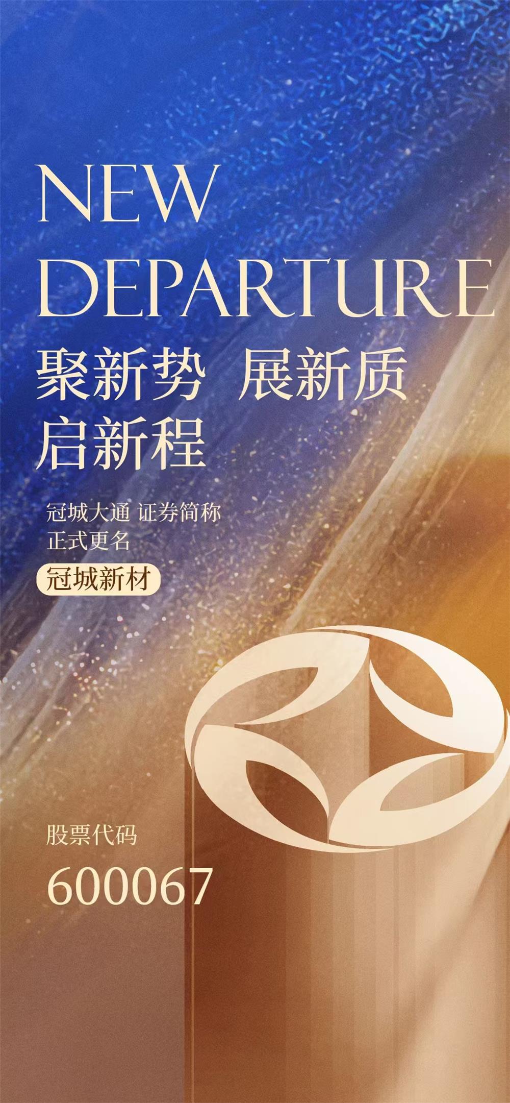 近日,凯时新材料股份有限公司对外发布公告,宣布证券简称将于2024年11月19日起正式变更为“冠城新材”,证券代码“600067”保持不变。